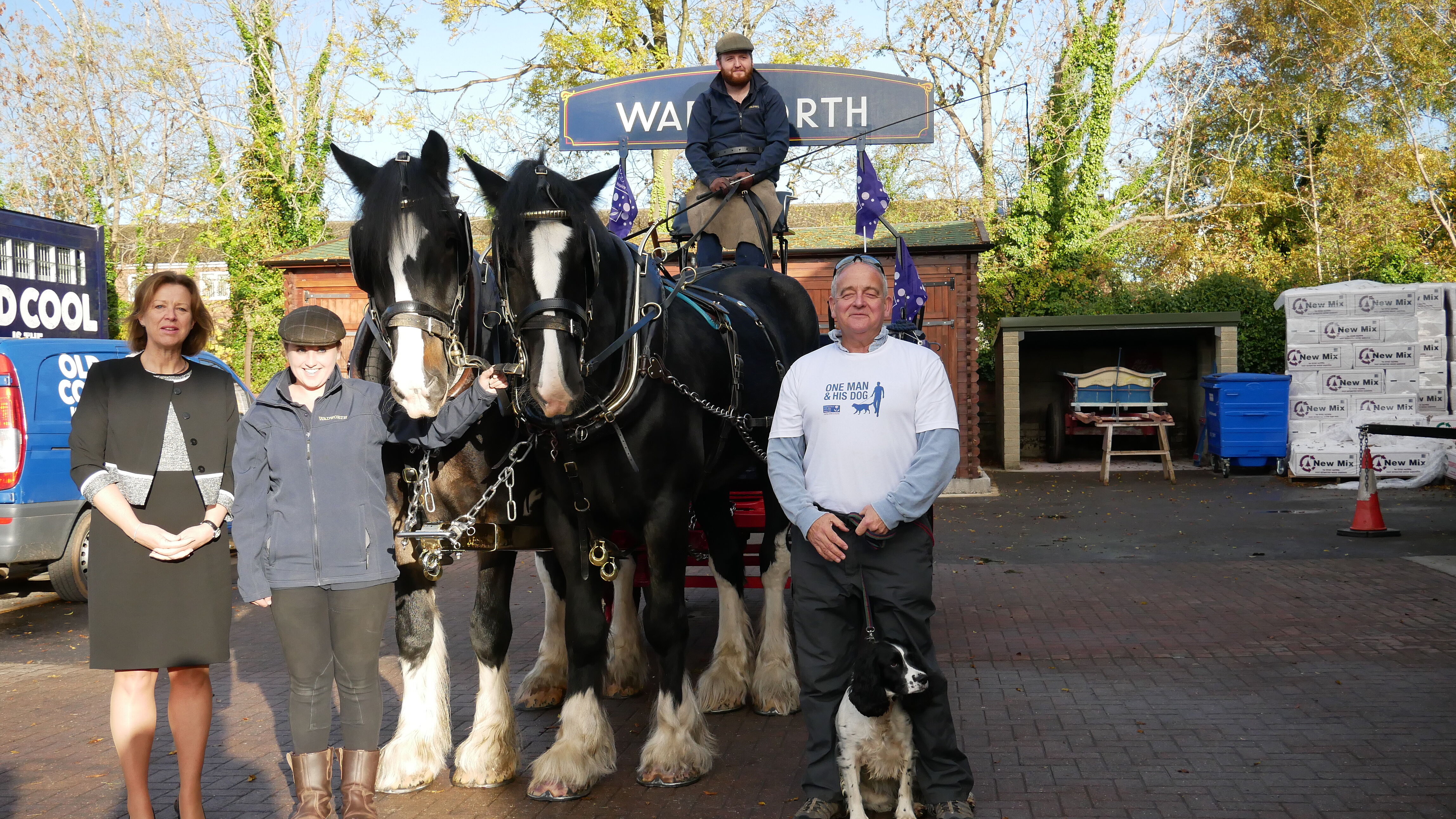 On Friday 26th October, Dorothy House chief executive John Davies and his springer spaniel Myrtle met the magnificent Wadworth brewery shire horses while passing through Devizes on their 180-mile One Man & His Dog walking tour. The tour will visit all 28 Dorothy House shops in 20 towns across the hospice’s 700 square mile region. It.aims to raise funds and awareness of local hospice, Dorothy House and their future plans for meeting rising end of life care needs.